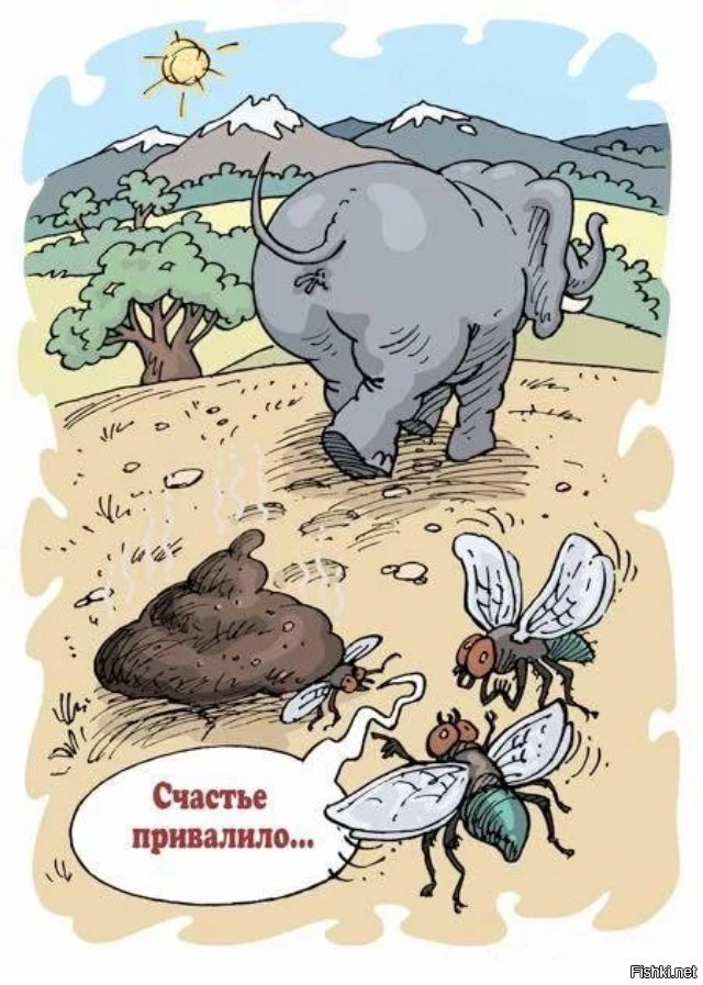 Скушал Билл г..., получил доллар и они поскакали дальше. Глядят - снова на дороге г...