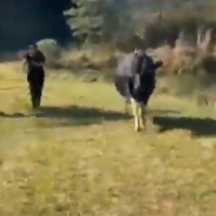 Корова гонится за машиной
