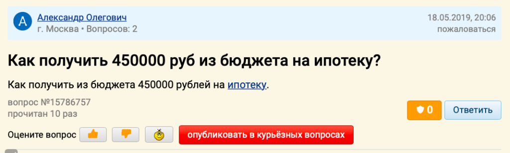 Стесняюсь спросить... А Вы до сих пор интересуетесь вопросом "КАК ПОЛУЧИТЬ 450 тысяч по ипотеке из бюджета?" www.9111.ru