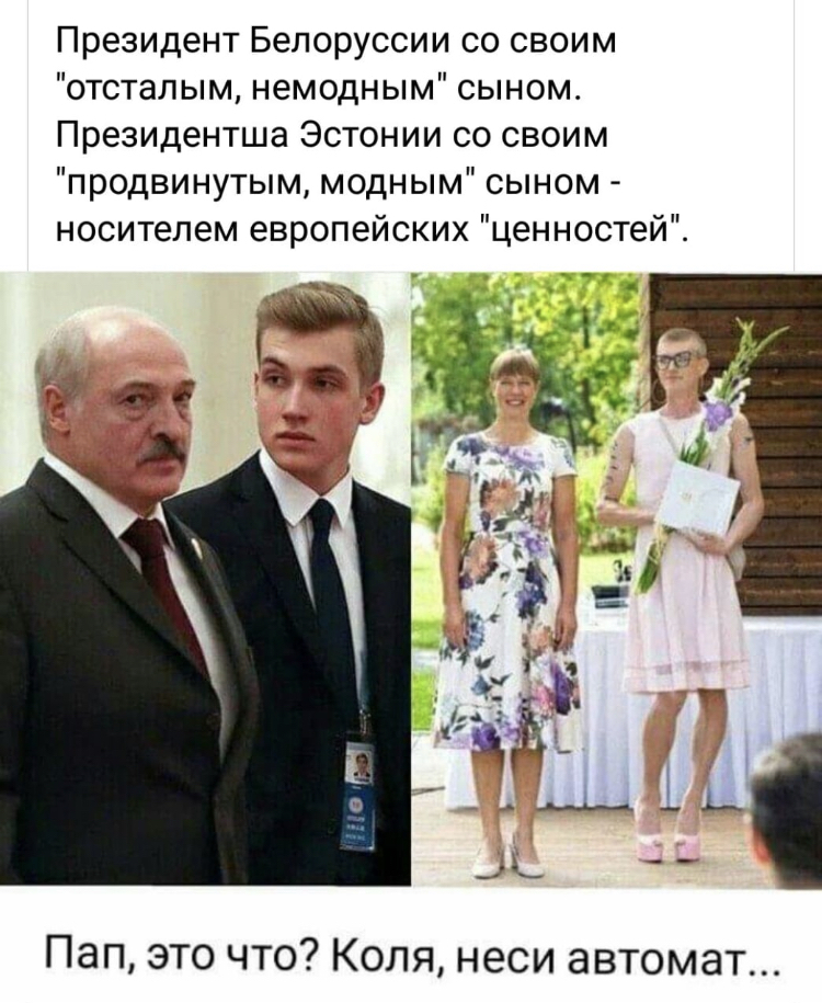 Русские никогда не отдадут братьев-славян белорусов в медвежьи объятья Запада и не предадут их, как, уверен, и наоборот. Пусть "просвещённая", американизированная Европа и не надеется! Фотоснимок точно показал, какие ценности исповедует Запад и Восток...
