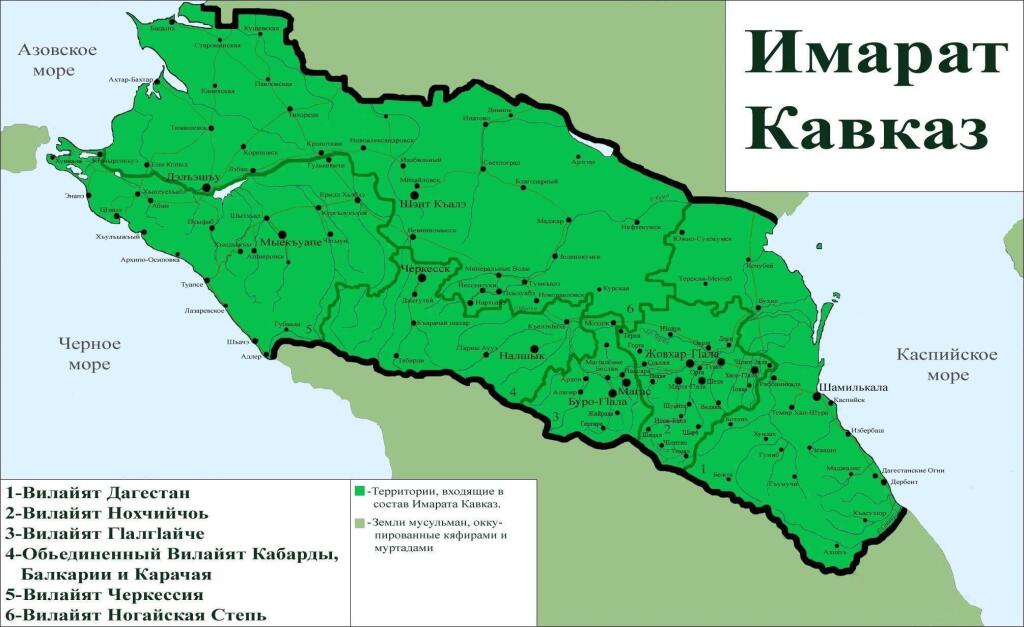 3. На момент проведения президентских выборов 2000 года, шла вторая чеченская война, Чечня де – факто вышла из состава России и возвращение её в российское правовое поле, последовало лишь после смены власти. А о создании «Имарата Кавказ», 7 октября 2007 года объявил в своем обращении президент непризнанной Чеченской Республики Ичкерия Доку Умаров. В состав Имарата Кавказа должны были быть включены Чечня, Дагестан, Ингушетия, Кабардино – Балкария, Карачаево – Черкесия, Северная Осетия и Ставропольский край.