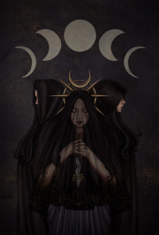 И мы подходим к весьма древнему архетипу - Гекаты, сочетающей в себе три ипостаси - Деву, Мать и Ведунью.