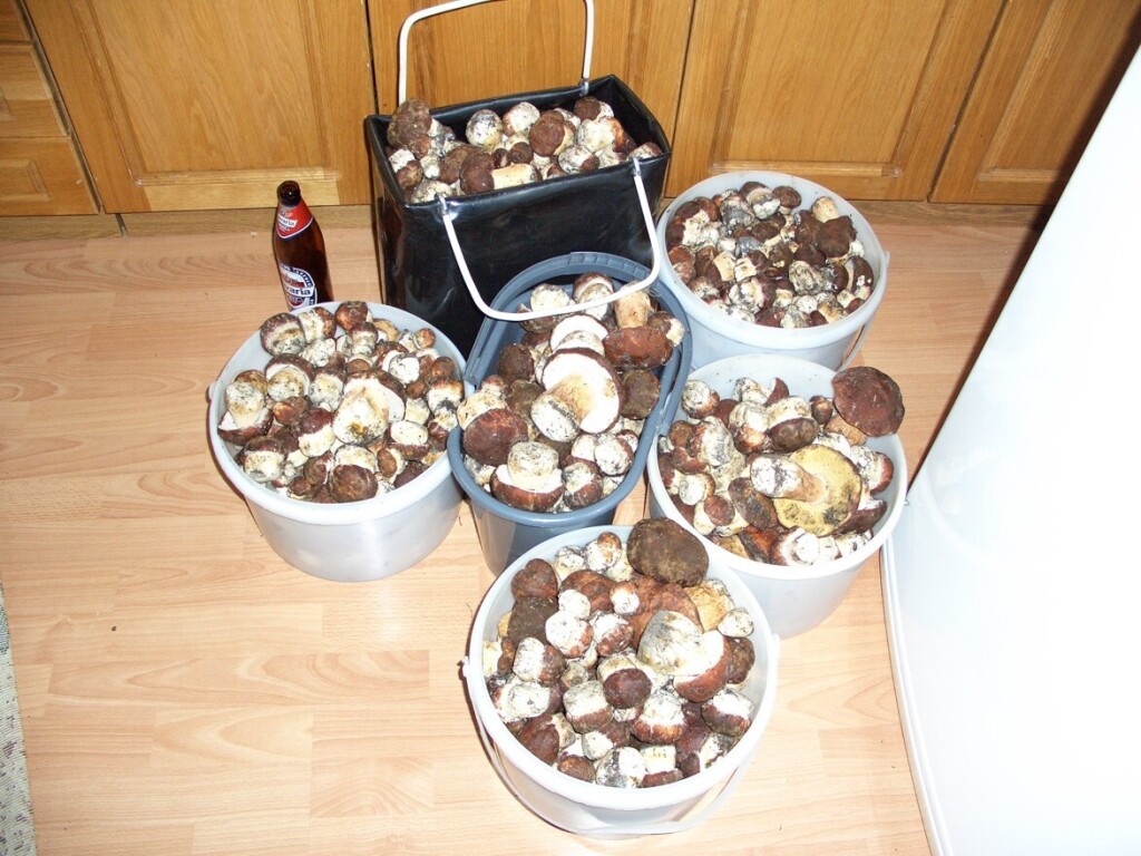 А ещё один раз привез красноголовиков (подосиновиков) больше полванны - только одни шляпки нераскрытые... Это раза в два больше белых...