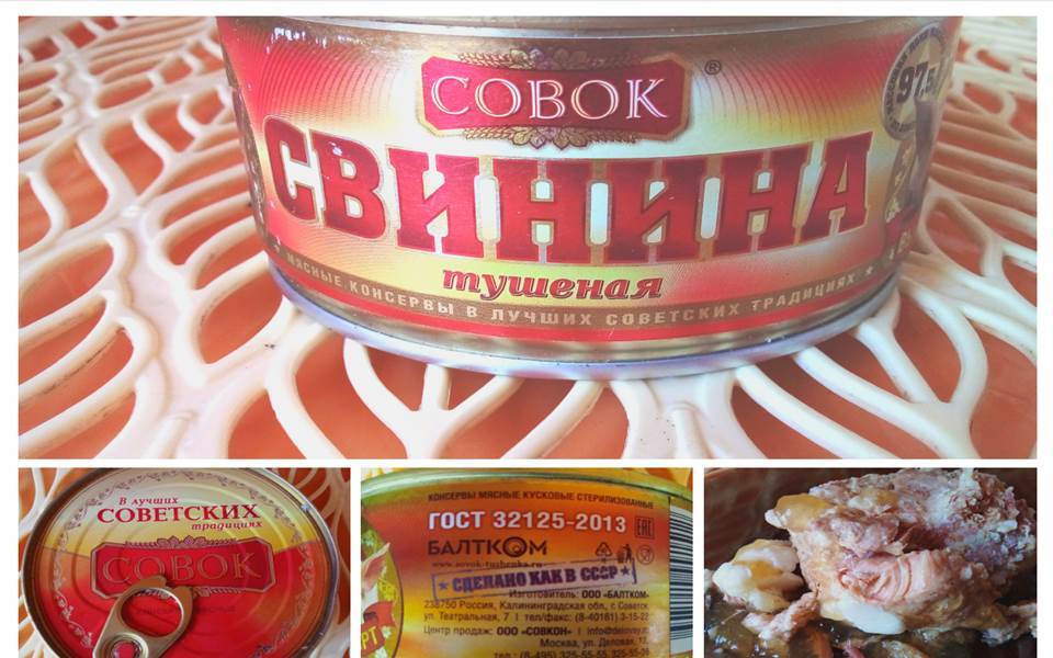 Дорогие товарищи, я получаю регулярно от Роспотребнадзора новости о проверке тех или иных продуктов, так вот тушенка этого Совка - по микробиологи.. ого-го как далека от всех стандартов, про сгущенку... лучше промолчу, а килька в томате сама пробовала... томат уже не тот, какая-то просто томатная жидкая заливка, а цена - приличная, надо сказать...