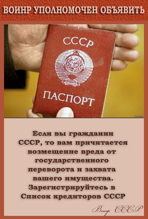 Народ! Для решения наших проблем, возмещения вреда от госпереворота собираемся тут: ВОИНР-СССР!