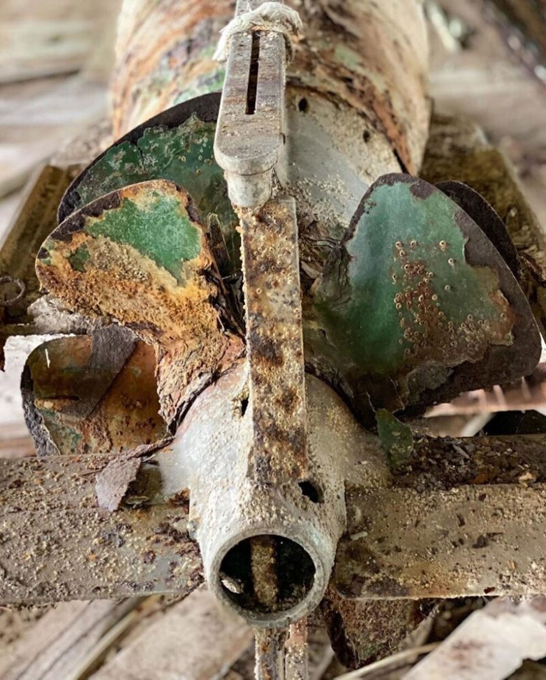 Из старых боеприпасов уже убрали боевую часть, никакой опасности они не представляют. За десятилетия они утратили «товарный» вид, всю краску постепенно заменяет ржавчина. Кажется, их даже не успели перераспределить под учебные запуски.