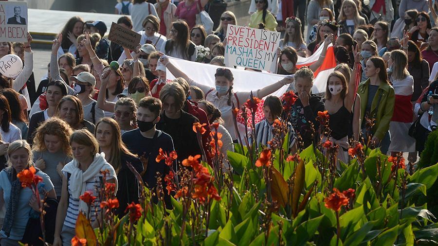Несогласованный женский марш завершился в центре Минска, сообщает телеканал РЕН ТВ