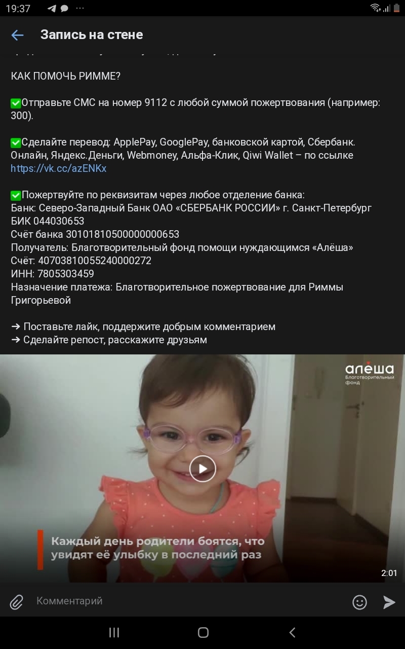 На днях, случайно, увидела обращение о помощи маленькой Римме и не могла остаться в стороне. Максимально сделала репосты; написала блогерам (которые занимаются благотворительностью), отправила просьбу о помощи депутатам. Решила написать и сюда, может найдутся люди которые захотят помочь. Осталось собрать всего 840 тыс, а времени мало (надо успеть до 24 сентября)