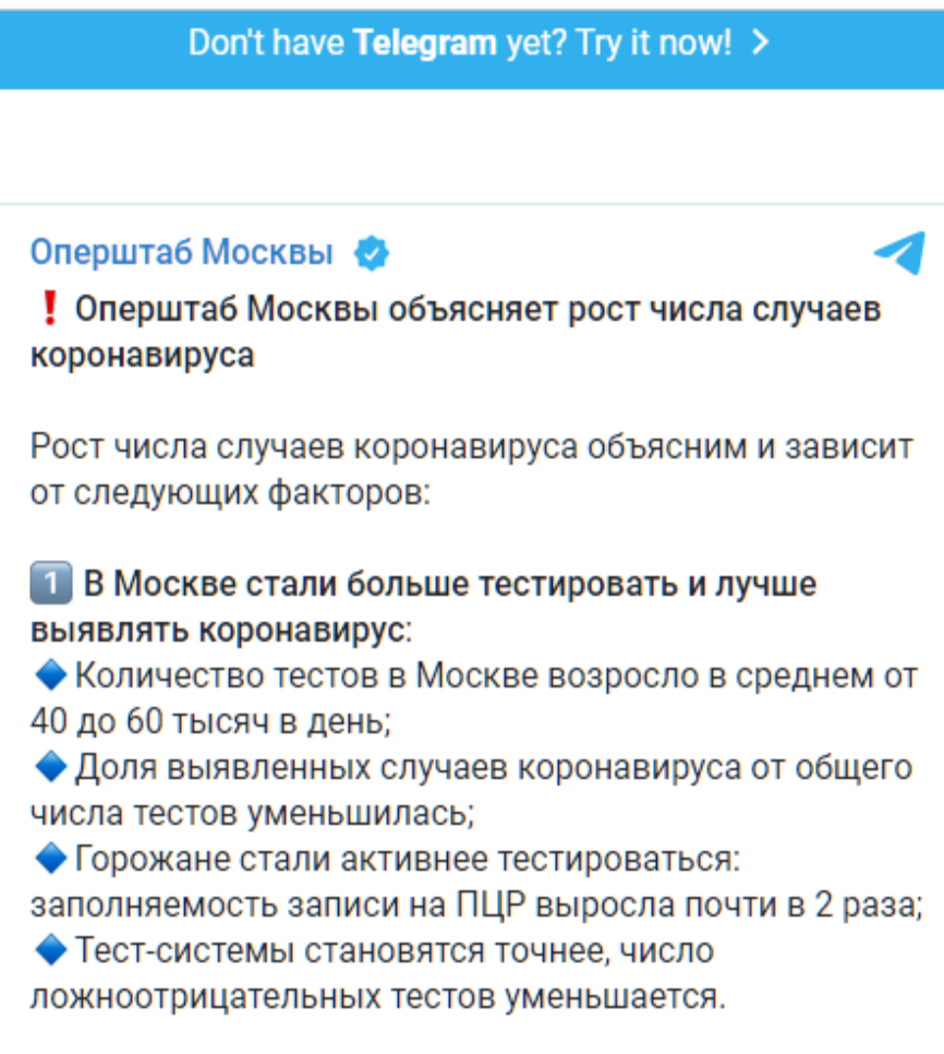 «Главные врачи коронавирусных стационаров говорят, что вирус стал НЕ НАСТОЛЬКО ЗЛОБНЫМ и болезнь стала протекать не настолько тяжело. Расслабляться ни в коем случае нельзя»,— цитирует Собянина ТАСС.