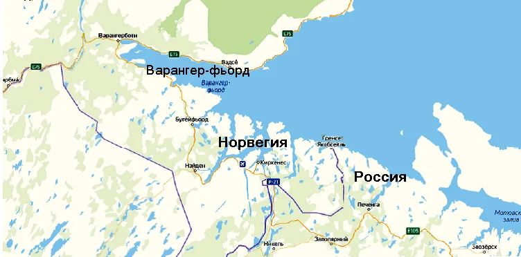 Летописные варяги – это не мифические шведы, а тот же индоевропейский народ, что обитал на южном побережье Балтики и на Севере Руси. На карте ниже показан залив Варангер-фьорд, который находится на севере Норвегии. Здесь только слепой не заметит русского наполнения этого норвежского топонима. Изначально его название так и звучало по-русски, как у саамов в форме Варьяг-вуода, отметила Л. Грот. Так же, как оно звучало по-русски в древности.