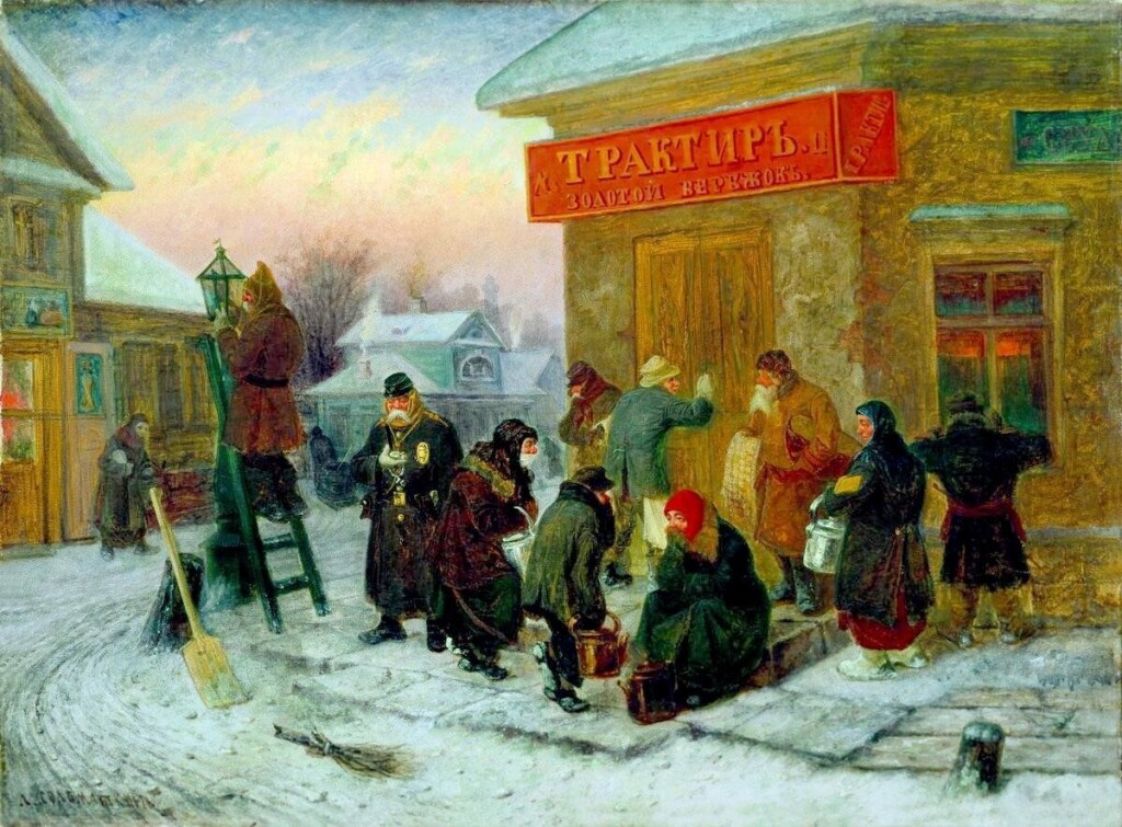Итак, в дешёвом трактире на окраине провинциального города, заплатив 5 копеек, можно было выпить полстопки, т.е. 50-60 грамм дешёвой и скорее всего, сильно разбавленной водки. На закусь по-быстрому предлагалась самая популярная закуска к водке во все времена – это, правильно, солёный огурец всего за 1 копейку. А наесться «до отвала» в этих дешевых трактирах можно было всего за 10 копеек. Кстати, на рынке за две копейки спокойно можно было выбрать дюжину отборных соленых огурцов (12 штук). В таких дешевых питейных заведениях находиться было не очень комфортно и безопасно. Постоянно сновали подозрительные, полукриминальные личности, пьяные ломовые извозчики, чернорабочие. Убийства и ограбления там были не редкостью. Совсем другое дело, это приличные трактиры, по-нашему кафе-рестораны. В этих приличных и столь популярных в годы начала 20 века трактирах было очень приятно скоротать вечерок. Столовые приборы сверкали чистотой, скатерти были накрахмалены и изумительно белыми, всюду мелькали расторопные и опрятные половые (официанты), а с кухни распространялись чудесно аппетитные и вкусные запахи. Здесь отобедать стоило в 1900-ые годы в России уже 30-50 копеек. Но это того, судя по воспоминаниям современников, оправдывало. Рюмка водки в подобном культурном заведении обходилась уже в 10 копеек, но это точно была казённая водка! Не балованная. За кружку пива (0,61 литра) следовало заплатить до 10 копеек. Чай с двумя кусочками сахару стоил всего 5 копеек. В хороших известных ресторанах, естественно, покушать стоило подороже. В среднем за обед в приличном ресторане XX века в Имперской России нужно было расплатиться в размере 1,5 — 2 рублей. Это плата за обычный обед: первое, второе, салат, пара стопок водки, десерт, без изысков.