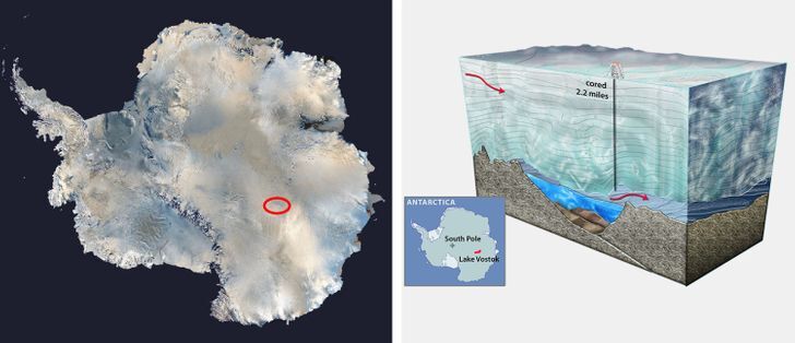 Одно из крупнейших географических открытий ХХ века — подледное озеро Восток, которое обнаружили в Антарктиде. Самое удивительное в этой находке — то, что она скрывалась под слоем льда толщиной в 4 км. Ученые уверены, что озеро было отрезано ледником от внешнего мира на протяжении нескольких миллионов лет.