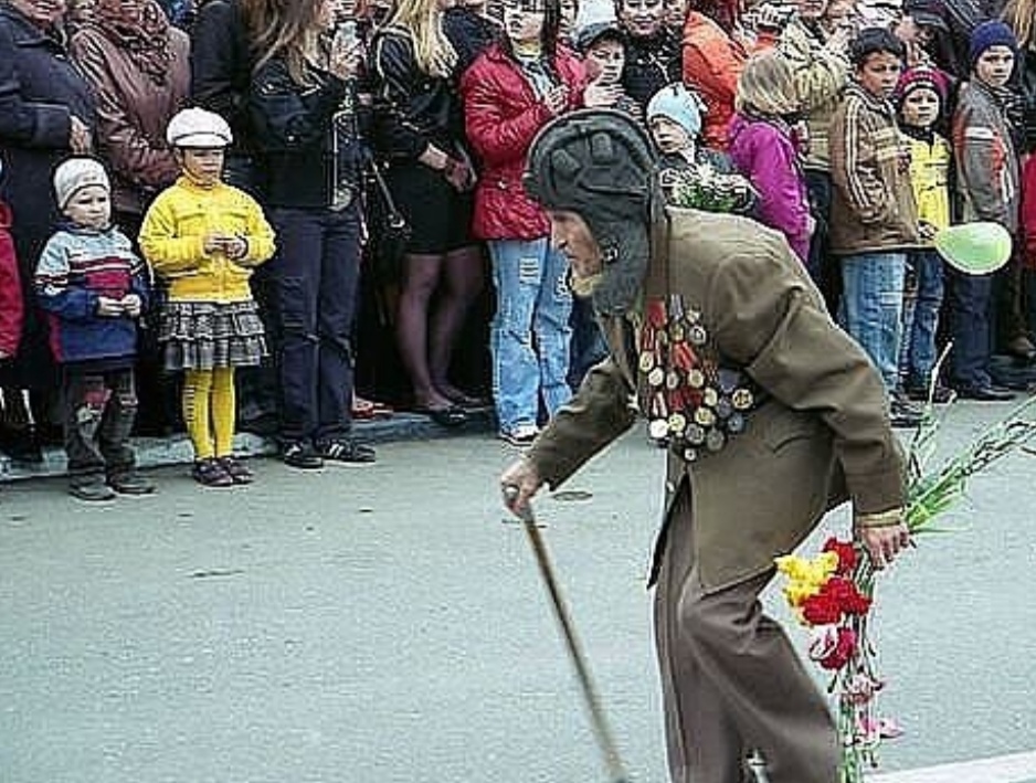Этот дедушка, когда то рисковал своей жизнью, проявляя своё мужество и героизм за свою великую страну, он не думал что будет завтра, его волновало то, что надо уничтожить врага и уберечь родную землю... Однако, тогда дед не думал о том, что когда то страна изменится, погрязнет в коррупции и в несправедливой жизни. Вот идёт он в свой праздник без каких либо картеджей, простой ветеран... Почему бы министру обороны в день Победы не пройти перед ветеранами пешком и отдать честь и сказать огромное спасибо!?