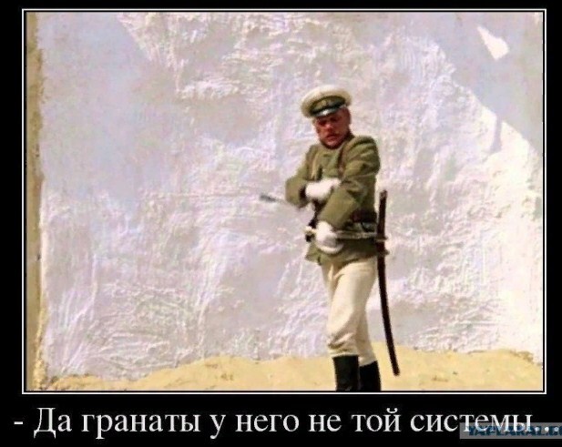 Наподобие той сцены из фильма "Белое солнце пустыни", когда выброшенный старым особистом в окно подпоручик пытался сохранить лицо со словами: "...да гранаты у него не той системы..."