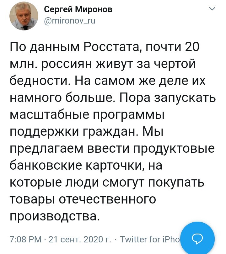 Стране не продуктовые карточки нужны, а другое правительство. То, которое сделает достойные з/п, пенсии, пособия. Продуктов в магазинах навалом... У НАРОДА денег НЕТ, чтобы их покупать.