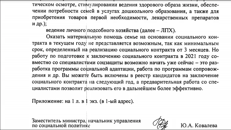 Но специалист социальной защиты была внимательна и вроде как заинтересована в том, чтобы помочь. Поэтому записала контакты данного подписчика, чтобы ближе к концу года (в ноябре-декабре) созвониться, чтобы начать оформлять "Социальный контракт" с января 2021 года.