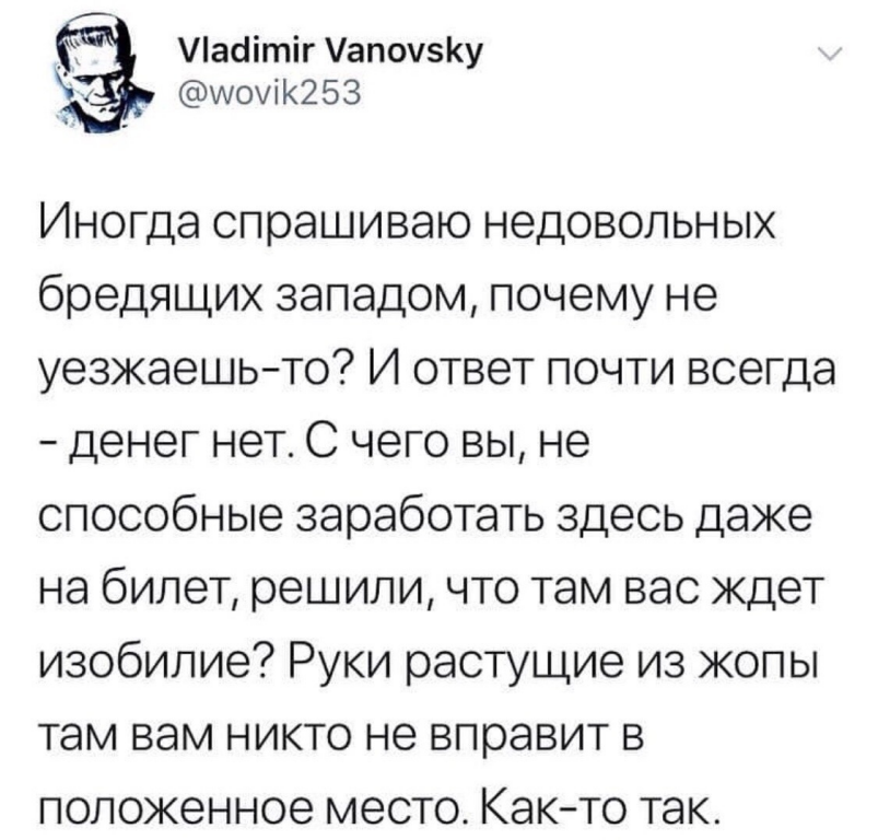 Путин довёл страну. Народ едет в Америку, лазит по свалкам и считает, что это лучше, чем оставаться в путинской супердержаве.