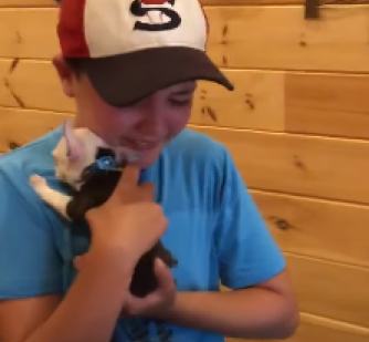Реакция мальчика на подаренного щенка