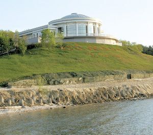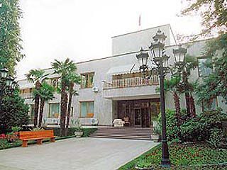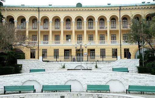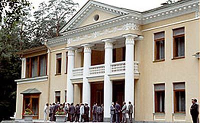 Летняя вилла президента в Сочи. Двухэтажное здание в стиле сталинского классицизма. Есть вертолетная площадка, два бассейна (с пресной и морской водой), тренажерный зал. На пляже — причал для президентской яхты.