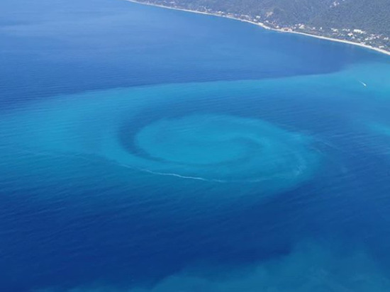 В социальных сетях появилось фото любопытного и редкого явления в Черном море, которое называют «глаз дракона». Вода закручивается в спираль так, что появляются потоки разного цвета. С высоты это выглядит как глаз огромного существа. Фото выложил в Instagram**** пользователь под ником gagraplan.