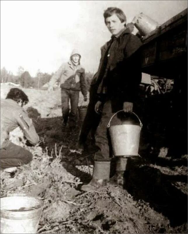 «Завтра 30 человек на уборку (переборку) картофеля (капусты или еще чего-нибудь)!» Набивается полный автобус рабочих, по дороге заезжали в магазин закупается вино/водка, и в пригородный совхоз. Там уже все бригадирши знакомы, привыкшие к нашим физиономиям, нас разбирают по полям (хранилищам-гноилищам) и мы два часа работаем. Потом совместный обед с возлияниями и еще пара-тройка часов работы спустя рукава. В где-то примерно в 16.00 садимся автобус и если по пути, развозит нас по домам, если нет, довозит до работы. Всё, рабочий день окончен. Иногда, если попадаем под выходной, то собираемся после работы к '''требуем продолжение банкета'''))) Чудно и весело было 😀😀😀