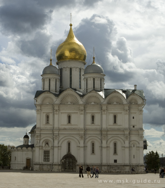 Напротив Благовещенского храма располагается Архангельский собор. На месте храма еще в 1247–1248 годах была построена деревянная церковь во имя Архангела Михаила. При Иване Калите в 1333 году был сооружен новый белокаменный храм. Иван Калита стал первым, кто был погребен под сводами строящегося храма. С тех пор храм стал усыпальницей великих князей Москвы и их ближайших родственников — удельных князей. На месте этого собора итальянским архитектором Алевизом Новым был возведен в 1505–1508 годах новый пятиглавый храм с элементами архитектуры итальянского Возрождения. В соборе погребены Иван Калита и Иван III, Иван Грозный и Михаил Скопин-Шуйский, Михаил и Алексей Романовы. Также здесь покоятся победители грозного войска Мамая, прославленные герои Куликовской битвы — Дмитрий Донской и Владимир Храбрый.