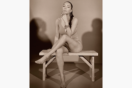 На размещенном в сети снимке 39-летняя телезвезда сидит на скамье в обтягивающем топе и трусах собственного бренда нижнего белья Skims. Волосы Кардашьян собраны в высокий хвост и заплетены в косу, а ее образ дополняют аксессуары: кольца, браслеты в виде цепей, серьги.