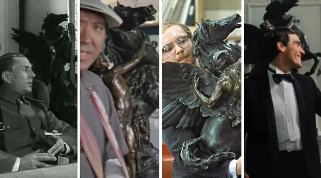 Впервые скульптура появилась на больших экранах аж 70 лет назад в “Секретной миссии”. Спустя 15 лет она снялась в кинокартине “Пакет”, а затем и в “Бриллиантовой руке”. Уже после такого статую “Персей и Пегас” можно назвать ветераном советского кино. Но по-настоящему знаменитой она стала только в 1977 году, когда зрители заметили ее в романтической комедии Эльдара Рязанова. И даже на этом карьера скульптуры не закончилась. Видимо, не зря ее называли любимой лошадью “Мосфильма”.
