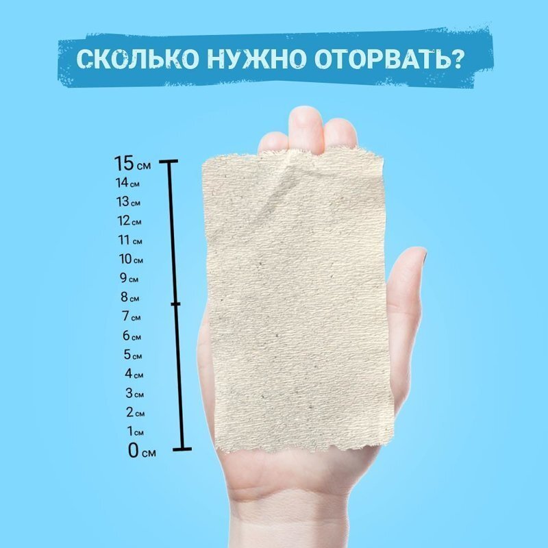 Итак, советы от производителей: "Известно, что размер человеческого сердца можно определить по сжатой в кулак ладони. Вот и мы решили для ясности инструкции взять в ориентир вашу ладошку. Просто выпрямите пальцы и оторвите кусок бумаги размером с длину ладони. Сверните бумагу пополам и все, вы сэкономили, а главное, подобрали идеальный, именно для вас, кусок туалетной бумаги."