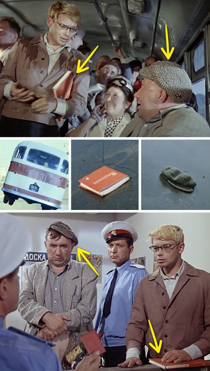 В этой сцене когда Федя и Шурик стали '''выяснять'' отношение за место в автобусе, из окна выпадают книжка Шурика и кепка Феди, однако уже когда они попали в отделение милиции, у них эти вещи были уже при себе...
