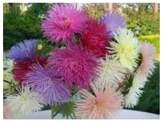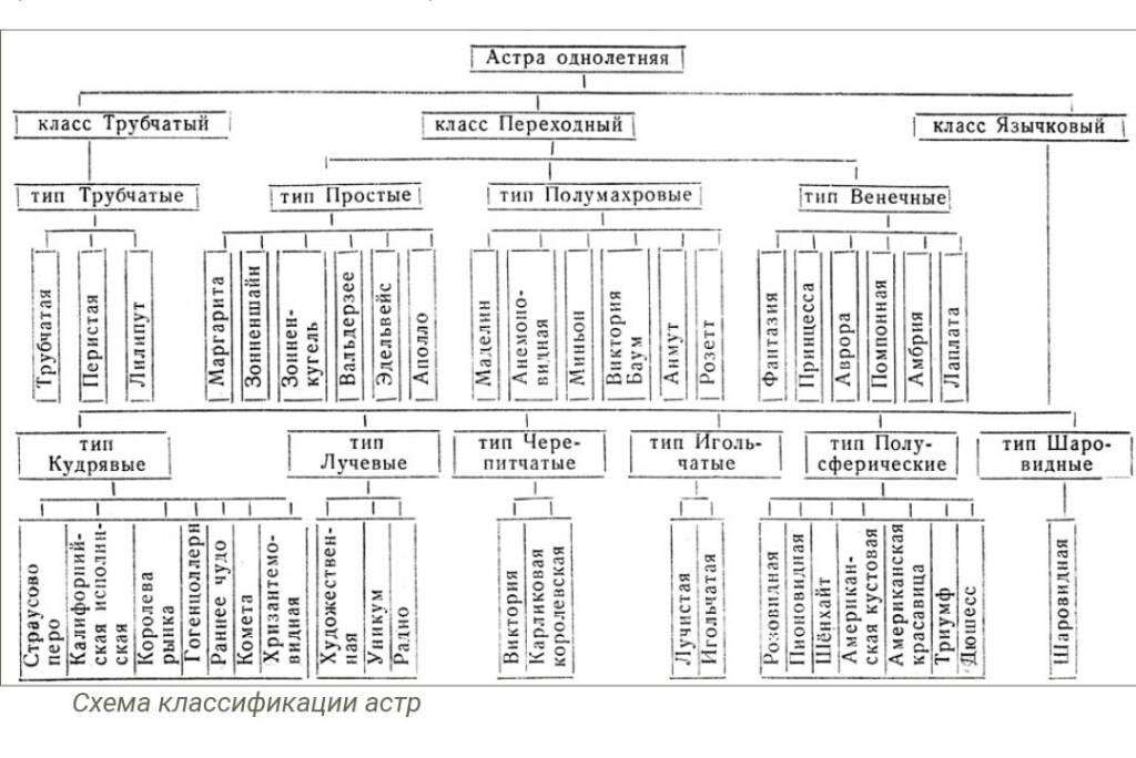 Цветки однолетней астры бывают немахровые, махровые, полумахровые, венечные, черепитчатые, лучевые, игольчатые, шаровидные, кудрявые, сферические, полусферические.