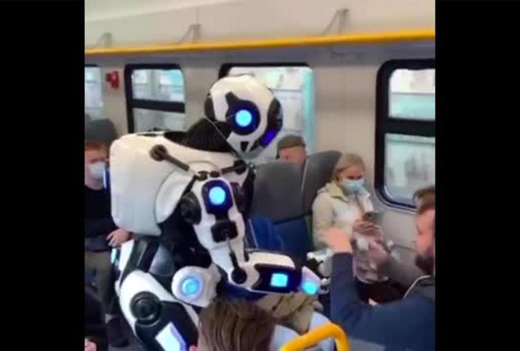 На кадрах робот ходит по вагону и раздает пассажирам маски. «"Роботу" маска не нужна, но другим раздает», — говорится в подписи к видео.