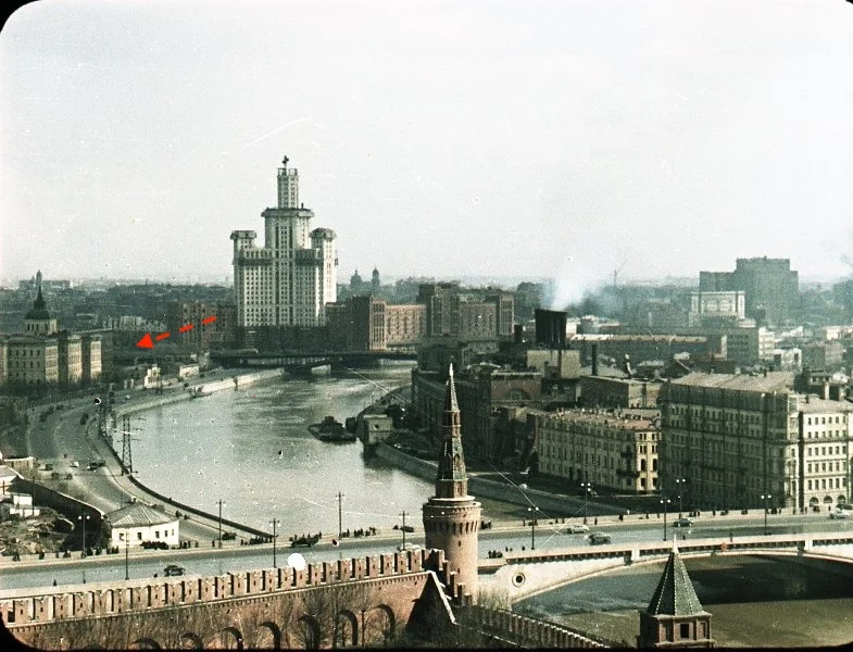 2. Квартал перед высоткой на Котельнической (историческое название — Кошели). Это место не находилось на пути следования кортежа американского Президента из аэропорта в Кремль, но Никсону захотелось приехать в район Ивановской горки: здесь, в Малом Трехсвятительском переулке, находится церковь евангельских христиан-баптистов. Из-за этого Кошели перед его визитом полностью снесли, сейчас на этом месте находится Устьинский сквер с установленным памятником пограничникам Отечества.