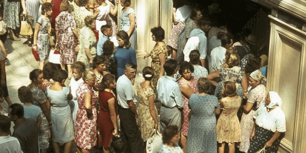 Я, конечно, понимаю, освоение космоса, великие стройки социализма, братская помощь пролетариату во всём мире, но почему нельзя было наладить производство элементарных товаров народного потребления в достаточном количестве? Чтоб народ в очередях не давился.
