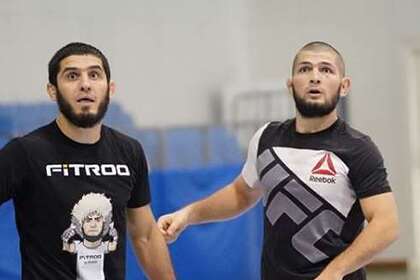 На снимке Нурмагомедов и его партнер по Eagles MMA Ислам Махачев с удивлением смотрят в сторону. 32-летний россиянин спрашивает подписчиков: «Как вы думаете, что там за кадром нас так удивило?»