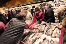 В больших супермаркетах таких как "Лента" или "Магнит Семейный" часто бывают хорошие цены на замороженную рыбу или креветки. Но вся беда в том, что особенно на креветках просто огромный слой льда.