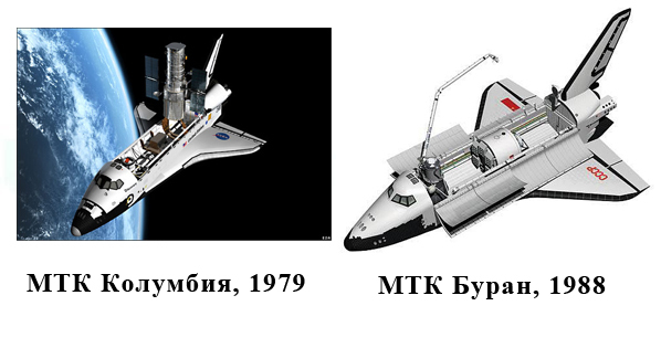 Даже с автомобилями не всё так однозначно. "Нива" - первый в мире кроссовер, сами придумали. А насчёт самолётов, ракет и космических челноков - есть объективные физические законы и принципы, материалы и технологии доступные на каждый конкретный момент времени, поэтому они всегда будут очень похожими. Тот же "Буран" у нас здесь на компьютерных моделях просчитывали, определяли самую оптимальную форму.