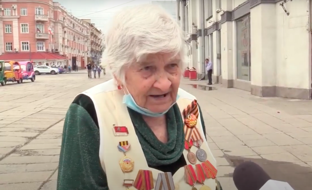 "Ветеранов войны в России становится все меньше, а мифов о войне — все больше. Путин все время говорит, что нельзя забывать войну, но он превратил патриотизм в какое-то шоу и пытается присвоить победу. Но войну выиграла Я и Советский Союз!