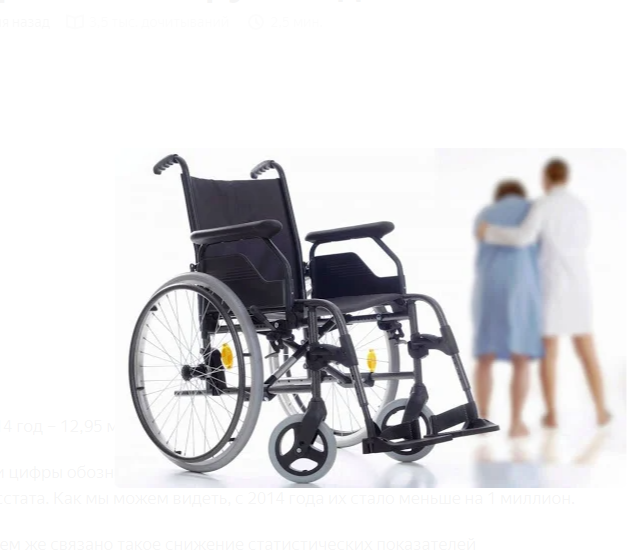 Эти цифры обозначают число людей с инвалидностью в России по данным Росстата. Как мы можем видеть, с 2014 года их стало меньше на 1 миллион.