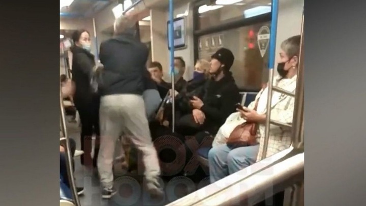 Из сообщений с мест: пассажир московского метро избил женщину без маски, которая громко покашляла, и попал на видео. Видеозапись опубликована в Telegram-канале «Плохие новости 18+».