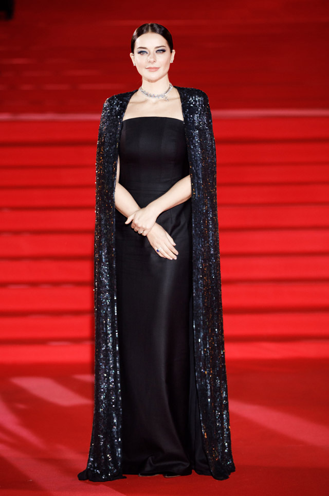 Почти все звезды появились на вечере в нарядах черного цвета. Мария Кожевникова выбрала платье с глубоким декольте и разрезом на ноге, а Марина Александрова вышла в свет в элегантном черном платье с накидкой, расшитой пайетками. Софья Эрнст, которая только недавно стала мамой в третий раз, тоже поразила публику своим эффектным образом — полупрозрачный верх ее платья был украшен камнями.