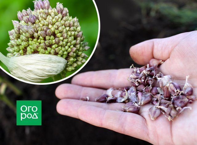 Чтобы получить более крупные воздушные луковички, оставляют стрелки на крепких и здоровых растениях. Как только стрелка распрямится и оболочка коробочки лопнет, чеснок убирают и досушивают в затененном месте. Затем коробочки срезают и отбирают на семена самые крупные «бульбочки» размером 4-5 мм. Высевать их можно весной или осенью, как и весь озимый чеснок. Дезинфицировать перед посевом бульбочки не требуется, поскольку в них изначально отсутствуют возбудители болезней. Высевают семена на глубину 3 см, на расстоянии около 2 см. Между рядами можно оставлять 20-30 см, чтобы было удобно ухаживать за всходами. К середине лета из семян вырастают луковички-однозубки, или севок, который убирают чуть раньше, чем весь озимый чеснок.