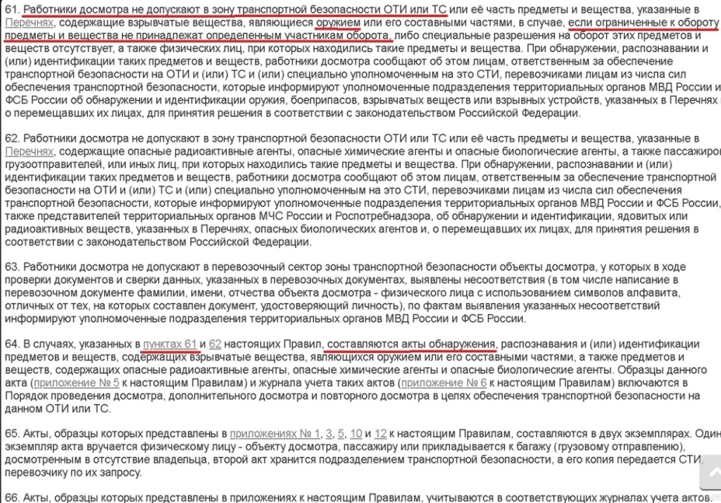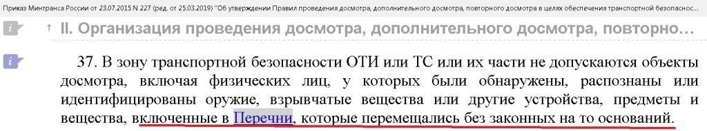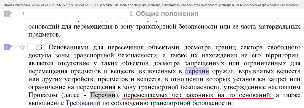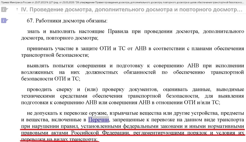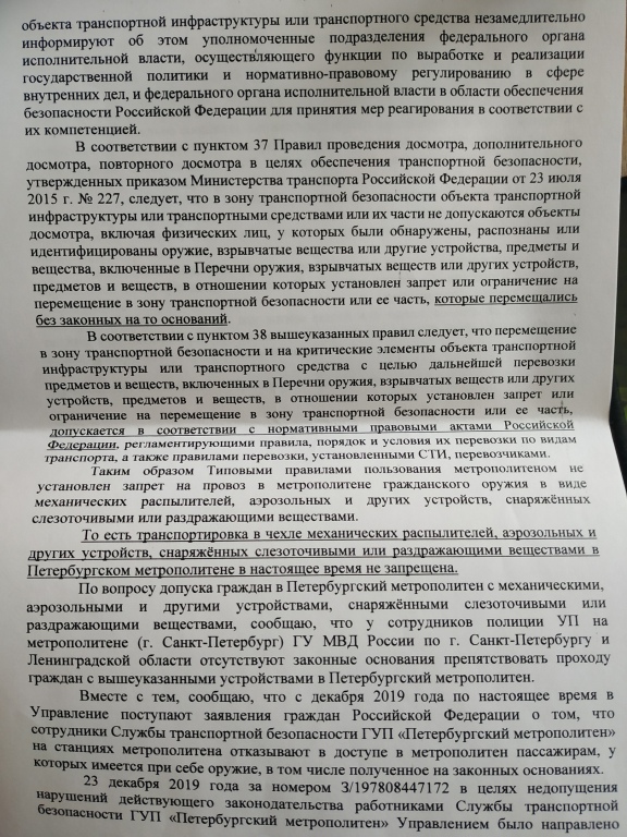 2. в ПРИКАЗЕ 227 Правилах досмотра почти в каждом пункте пометка "при нарушении закона" "без законных оснований", "при нарушении правил" и пр. смотрим фото внизу, то есть баллончик может транспортироваться, т.к. его оборот не запрещен и не требуется специальное разрешение, а вот боевой пистолет без лицензии запрещено транспортировать в метро и с ним нельзя в метро.