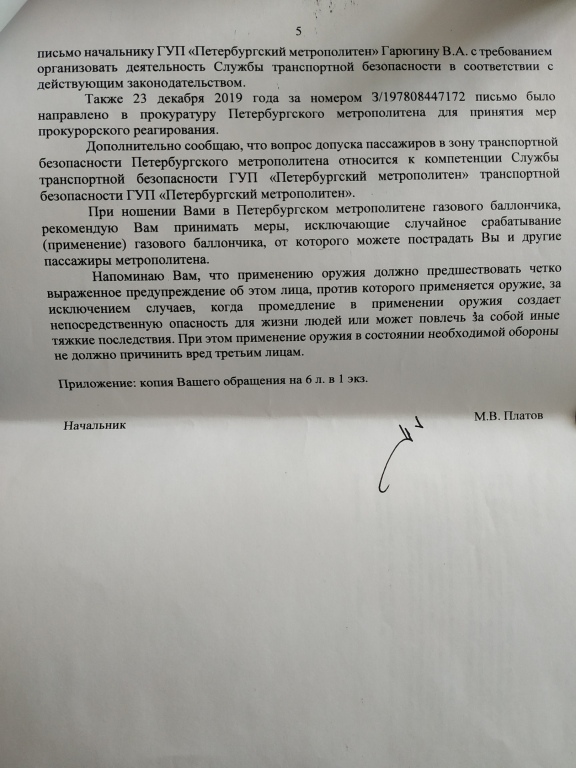 4. Согласно п. 61 и 64 приказа минтранса 227 Контролеры на станциях при запрете прохода в метро с оружием и газовым баллончиком обязаны составлять АКТ в 2 экземплярах и выдать вам акт - в случае НЕ допуска в метрополитен