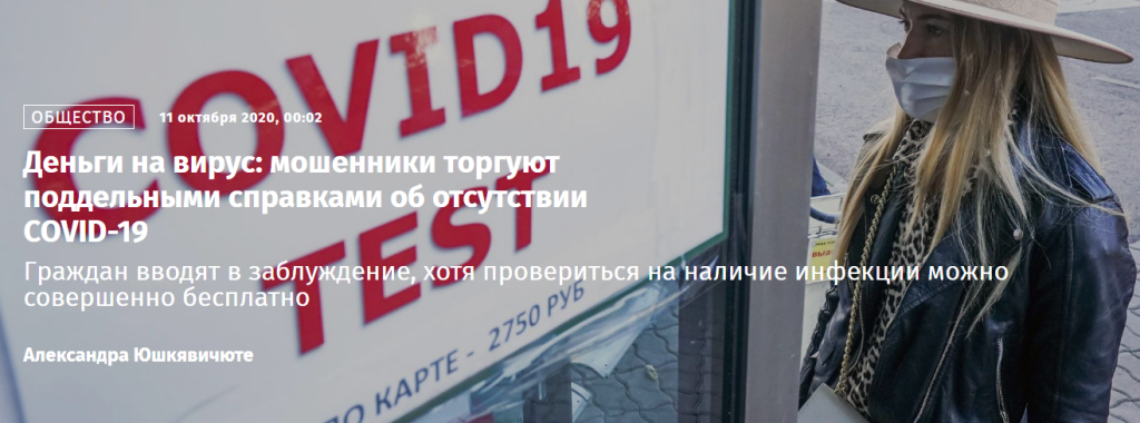 Главное управление региональной безопасности Московской области предупредило жителей о продаже в интернете фейковых справок об отсутствии коронавируса. Аналогичное предупреждение сделал мэр Москвы Сергей Собянин. Он отметил, что во время пандемии электронного мошенничества стало в разы больше, и призвал «не вестись на это». По словам градоначальника, фальшивая справка, якобы подтверждающая наличие антител к коронавирусу, — это бесполезная трата денег, поскольку «она никому не нужна».
