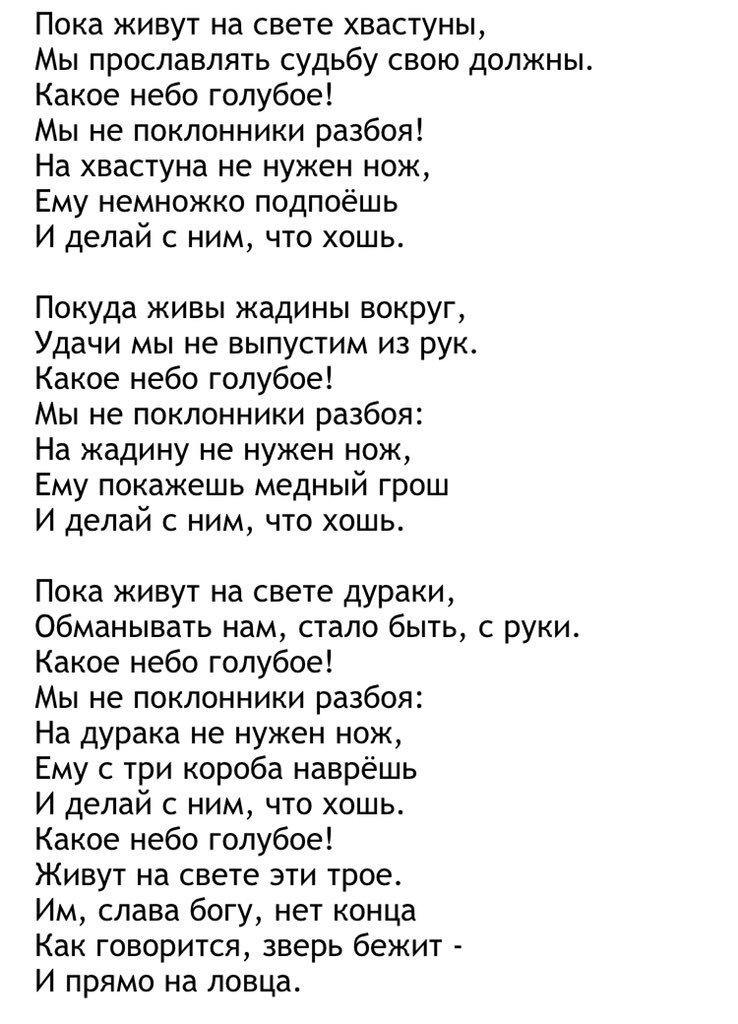 Выучи песенку и никогда так не поступай.