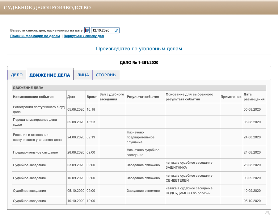 Очередное судебное заседание по делу было назначено на 05.10.2020 года, но на сайте суда никакой информации о результатах этого судебного заседания на данный момент нет.