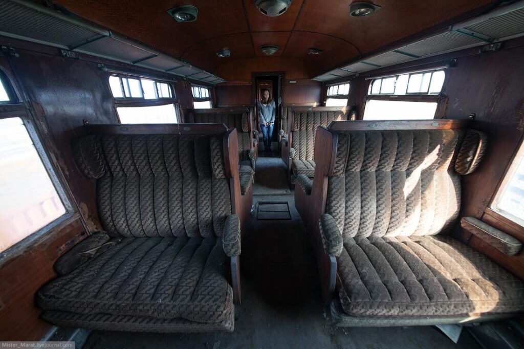 Бывший пассажирский поезд, доживающий свои последние дни в депо.