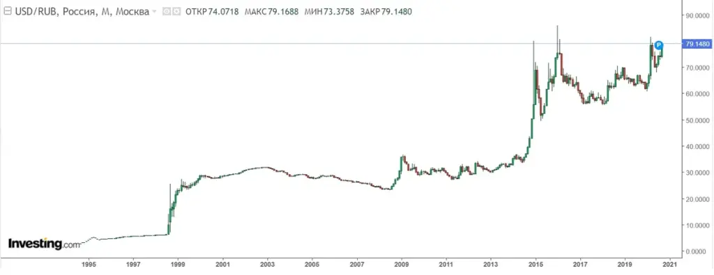 Но вечно это делать не получится. Доллары мы не печатаем, поэтому они имеют свойства заканчиваться. А вместе с этим пропадают и "временные костыли" рубля. И он идет по своему исторически определенному маршруту.