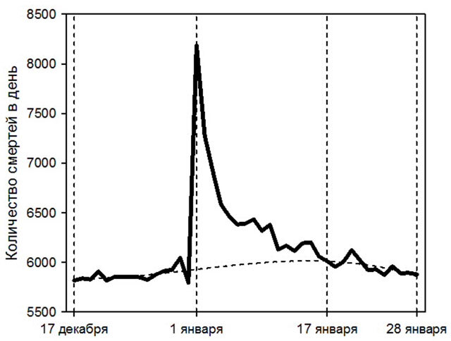 Наибольшая доля смертей — 67% — приходится на 1 января и ближайшие два дня.